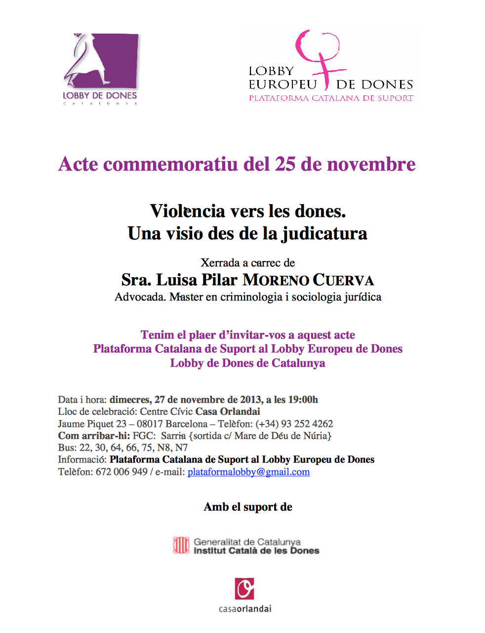 ACTE COMMEMORATIU DEL 25 DE NOVEMBRE Novembre 26, 2013Novembre 26, 2013 ~ plataformalobby ~ Deixa un comentari Descarregat el pdf aqui