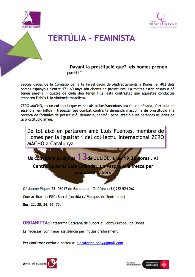 El proper dia 13 de juliol la Plataforma farem un cafè-tertúlia sobre que en pensen alguns homes sobre la prostitució.
